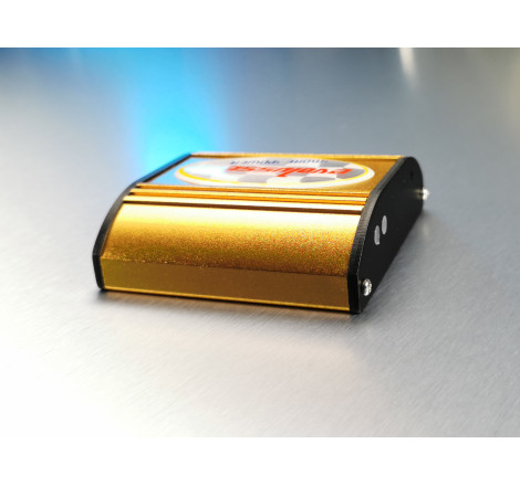 - The module is entirely made of gold and black anodized aluminum, which gives it great mechanical strength and perfect thermal conductivity, as well as a very elegant look. Its dimensions are 8cm by 7cm and a thickness of 2.5cm.