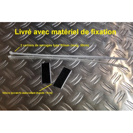 - Delivered with two 12 inch mounting clamps and a 2 inch strip of adhesive Velcro (scratch), which will let you attach the box with ease where you wish.